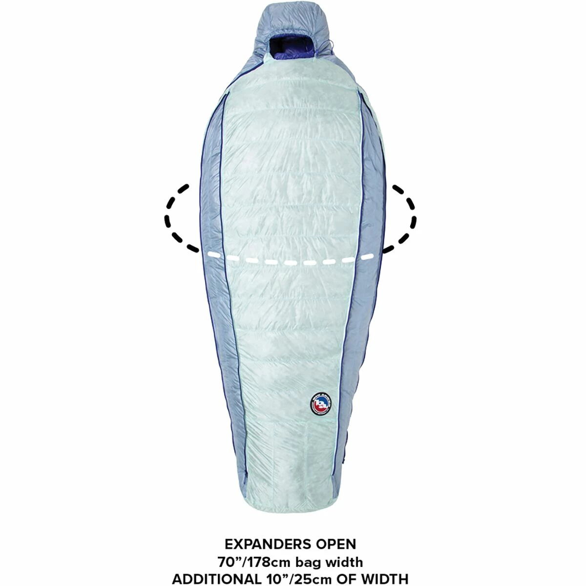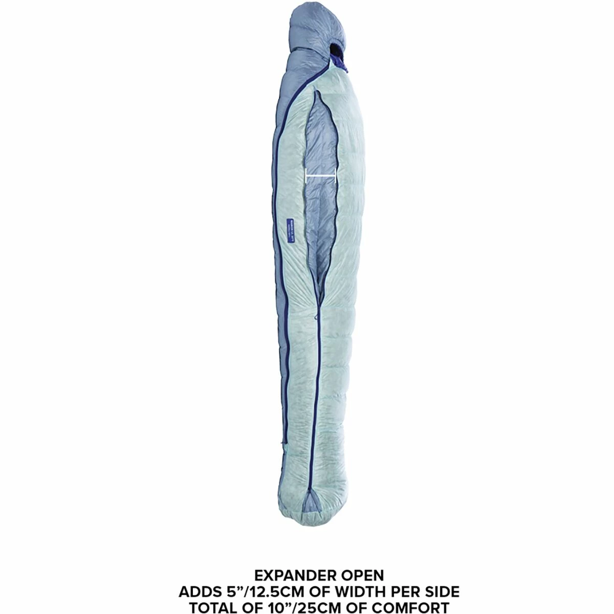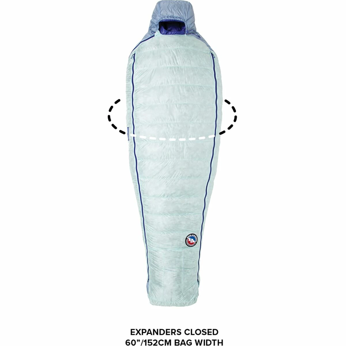 The Big Agnes Torchlight collection consists of unique, expandable sleeping bags, and the Women’s Torchlight UL 20 Sleeping Bag is a lighter version of the warmest Torchlight. Dual zippers allow you to expand the bag by about five inches to accommodate different clothes for different conditions. Slide the zippers down for extra room when you’re wearing insulators, or if you simply want more room, and slide them back up to keep you snug in summer clothing. Big Agnes made this bag lighter, packable, and more protective for alpine environments. Its 850-fill down insulation is the lightest, most compressible down that Big Agnes uses, and Big Agnes treated the down to retain its lofty warmth in wetter environments.