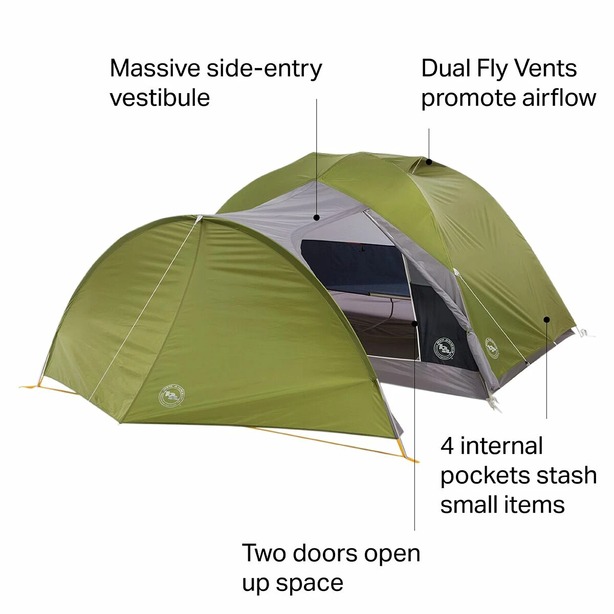 - Reflective guy lines and corners help you find this tent at night